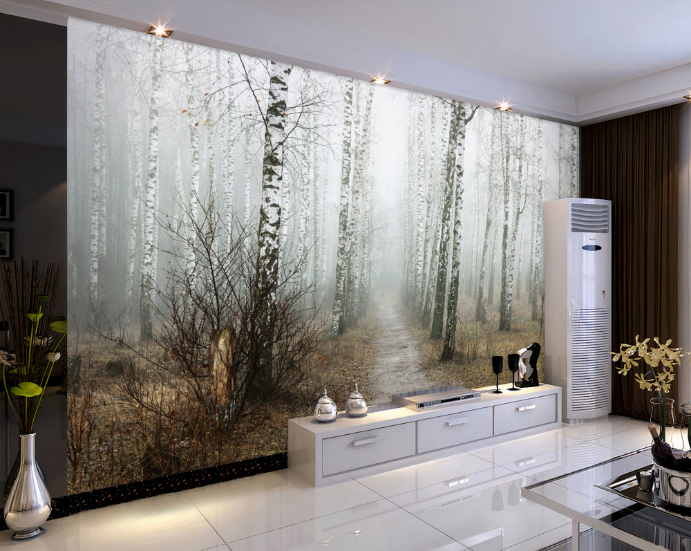 Fotomurales Ruta a través de un bosque de abedul nublado (artículo a89132 ) de la categoría Fotomurales Abedul