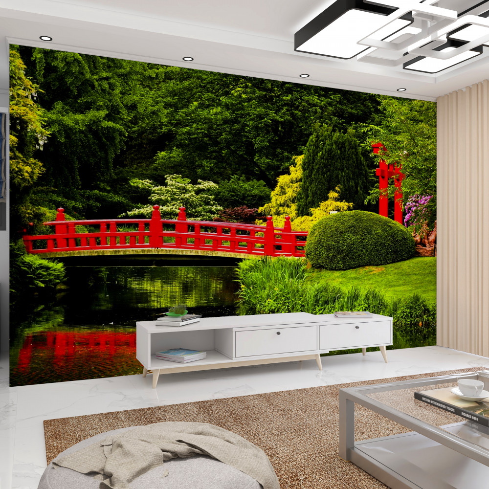 Fotomurales Árboles en flor cerca de un camino tranquilo