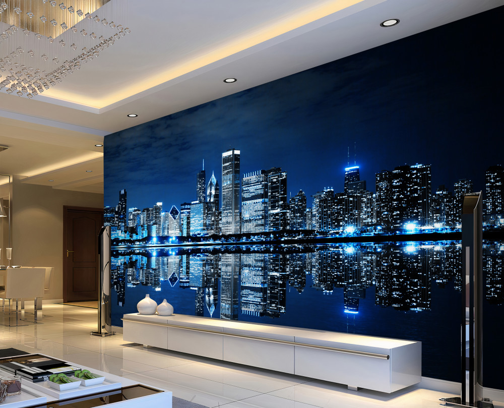 Fotomurales iluminación brillante de la metrópoli y terraplén