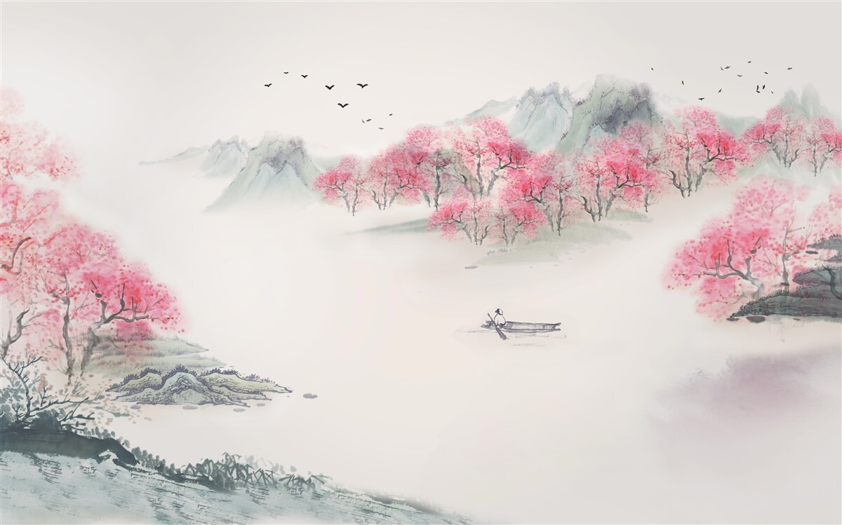 Fotomurales Bosque y bote brumoso por la mañana (artículo a98801 ) de la categoría Fotomurales Paisajes pintados