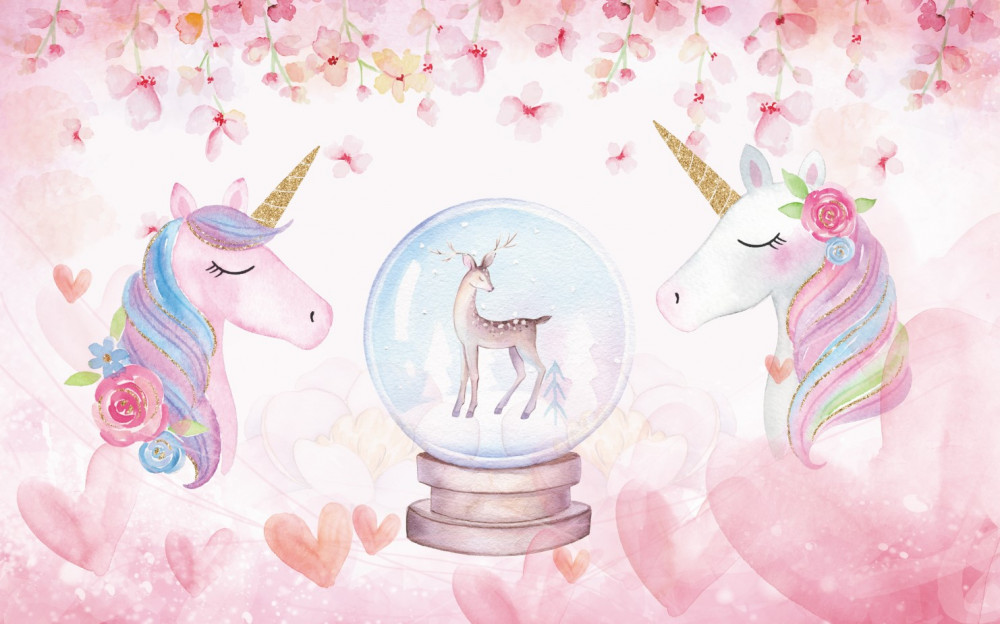 Fotomurales Cervo en la bola de vidrio y unicornios (artículo a89833 ) de la categoría Fotomurales Para chicas