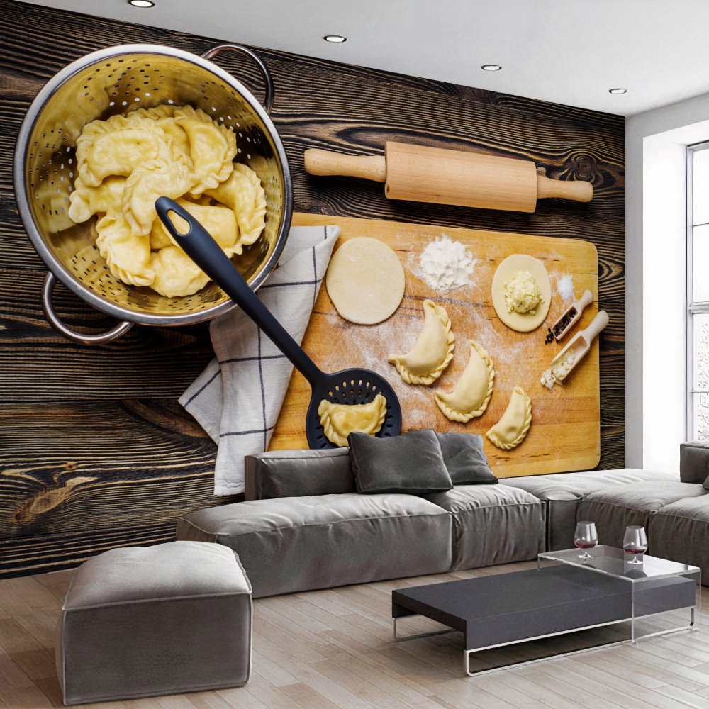 Fotomurales Cortar diferentes frutas y círculos blancos