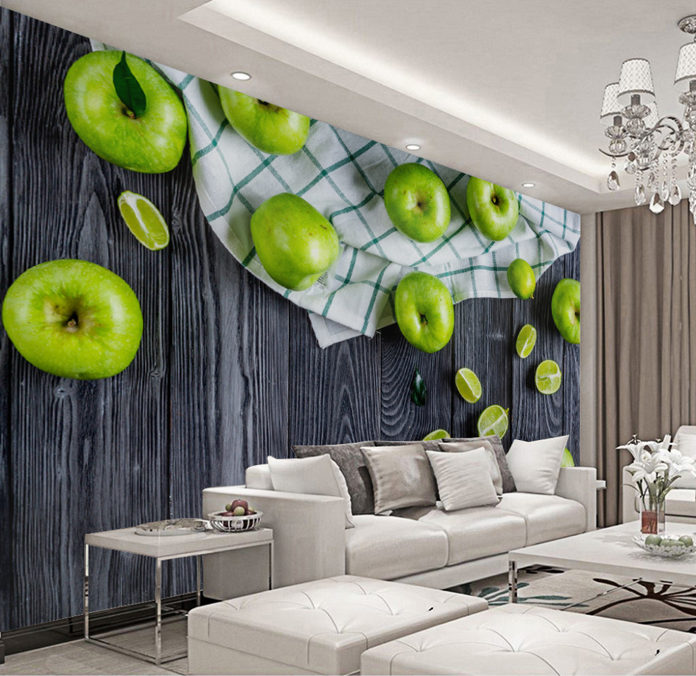 Fotomurales manzanas verdes y lima sobre la mesa (artículo a89612 ) de la categoría Fotomurales Para el comedor