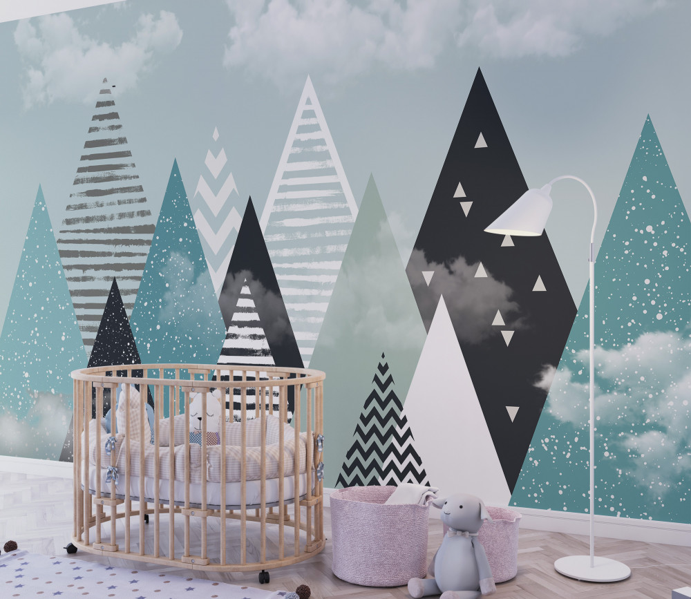 Fotomurales Conejitos blancos saltando sobre las montañas pintadas