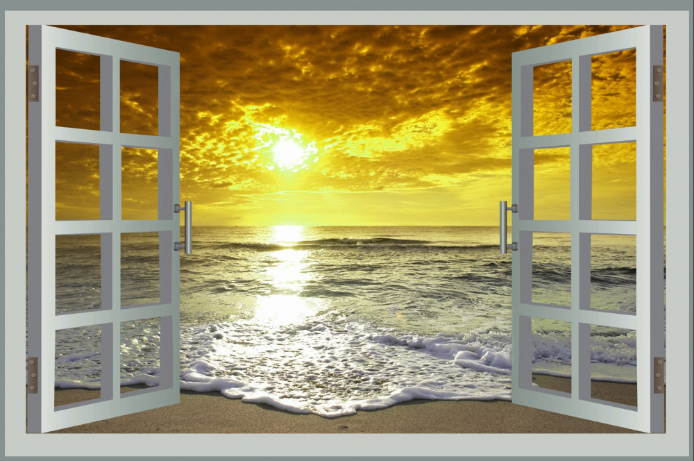 Fotomurales espléndida puesta de sol en el mar visto desde la ventana (artículo a93419 ) de la categoría Fotomurales Mar y playa