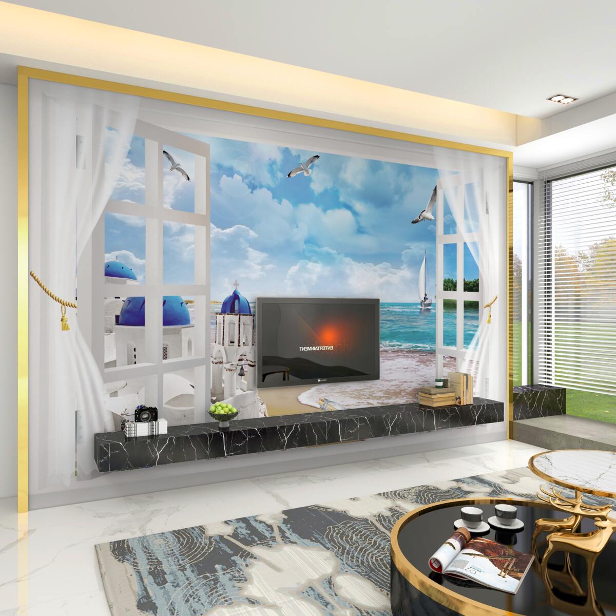 Fotomurales Vista desde la ventana de la playa de Grecia (artículo a98791 ) de la categoría Fotomurales Perspectiva de la ventana