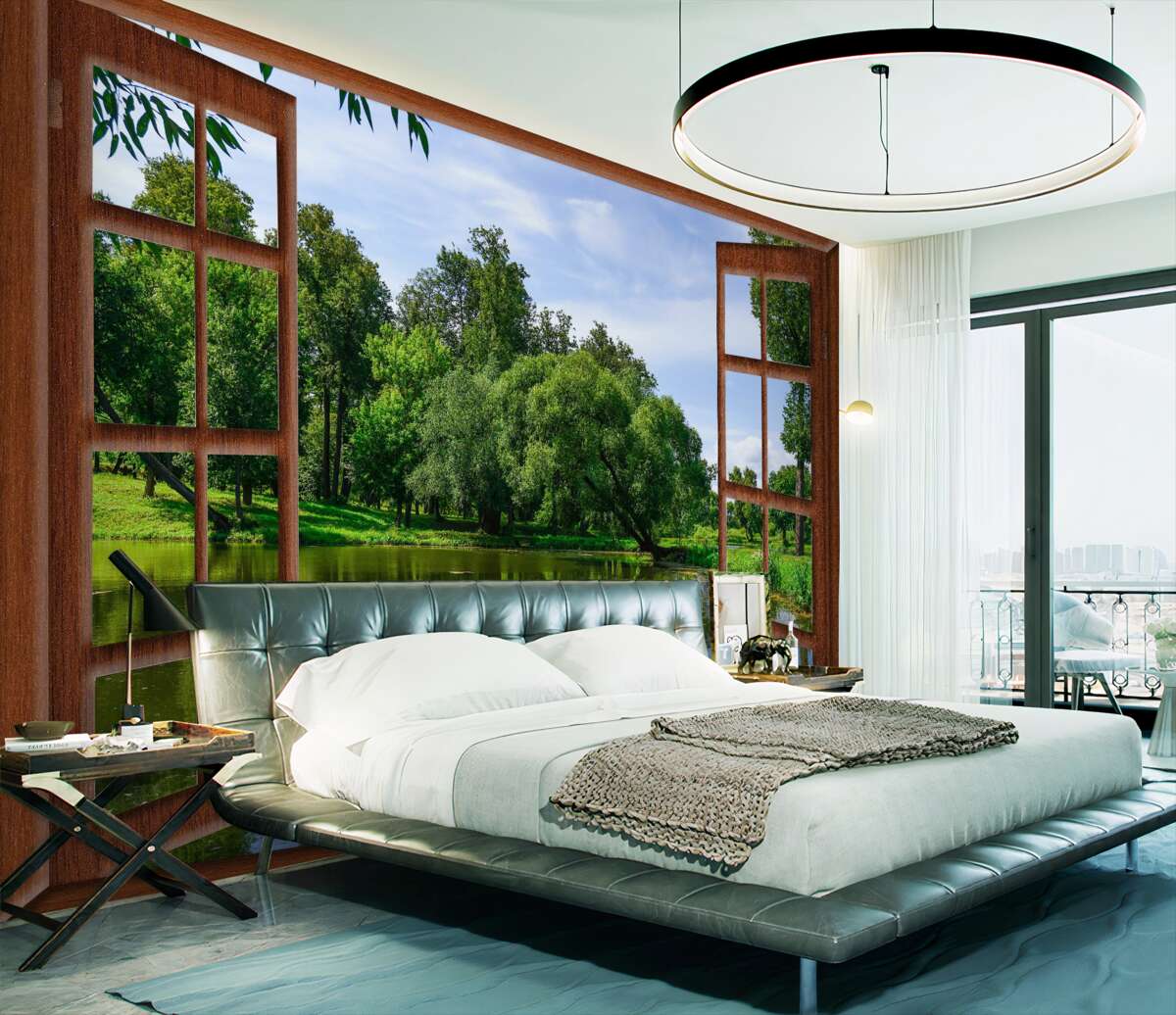 Fotomurales Ventana en la pared con una hermosa vista de la naturaleza