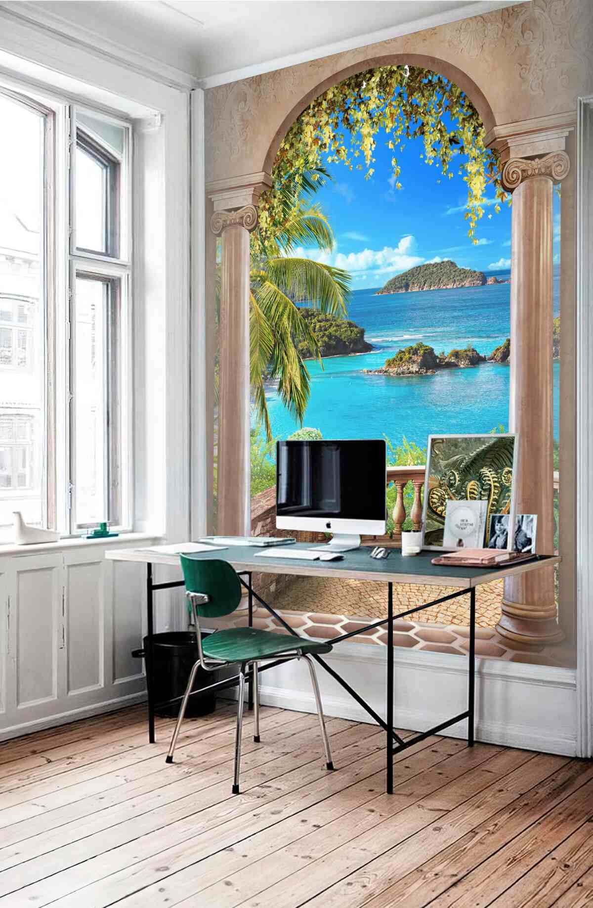 Fotomurales Ventana abierta con vistas al océano y la playa