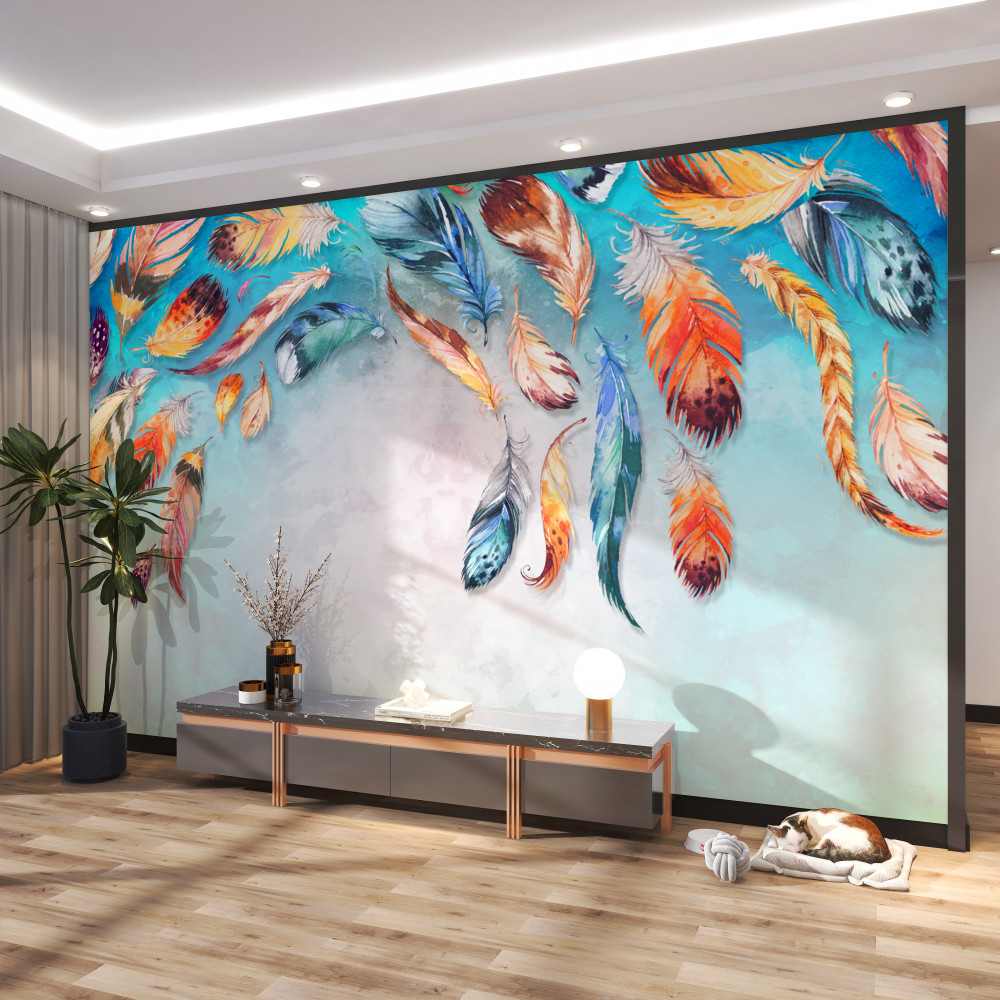 Fotomurales Plumas voladoras de diferentes formas y colores