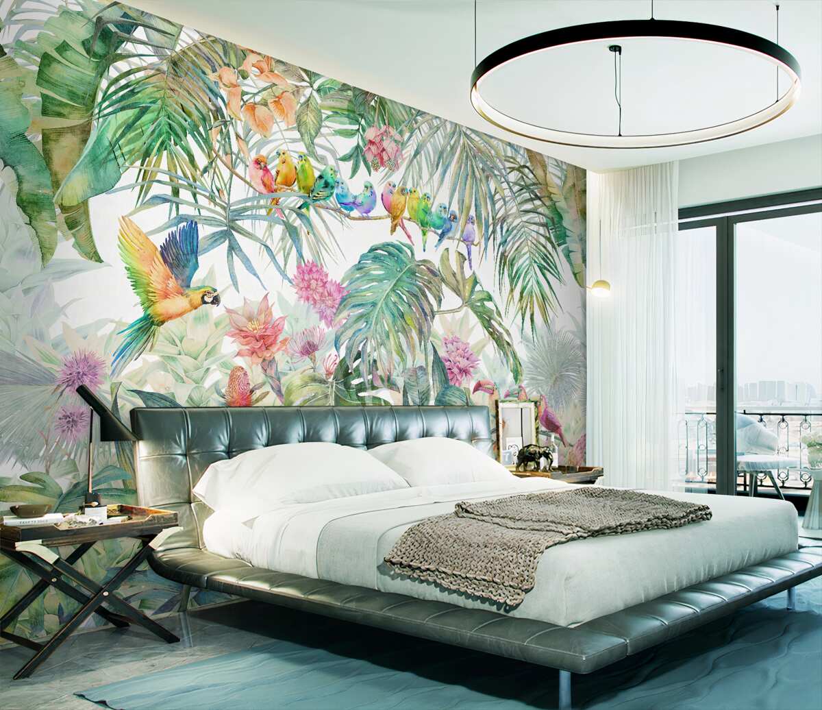 Fotomurales Aves en plantas tropicales