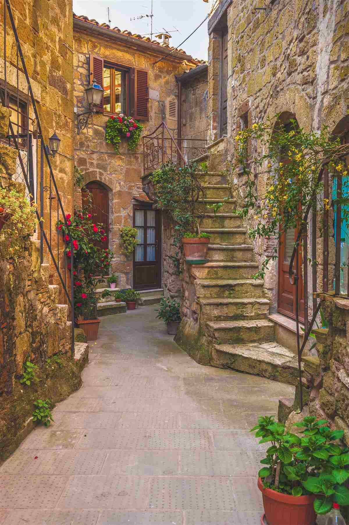 Fotomurales escalera con flores en el antiguo patio (artículo a95639 ) de la categoría Fotomurales Popular