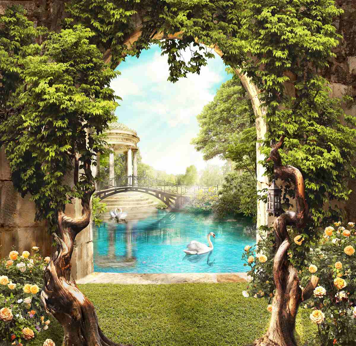 Fotomurales Estanque con cisnes blancos (artículo a96882 ) de la categoría Fotomurales Popular