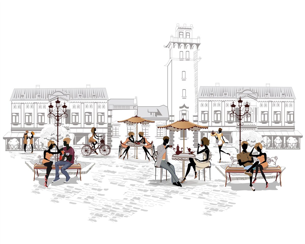 Fotomurales Gente en el centro de la ciudad en lápiz