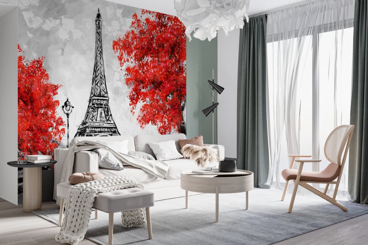 Fotomurales Gruesos árboles rojos cerca de la torre parisina (artículo a95893 ) de la categoría Fotomurales Popular