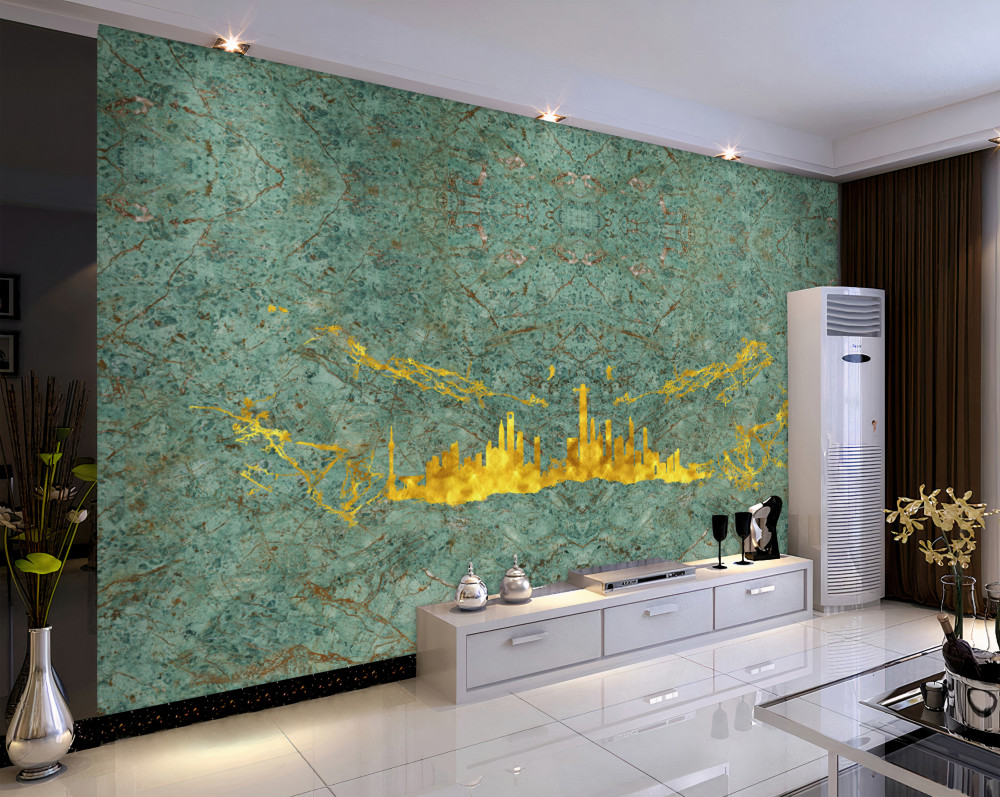 Fotomurales Cables dorados en mármol verde