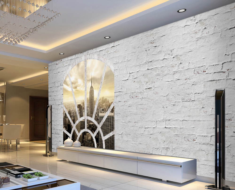 Fotomurales Ventana en una pared de ladrillo con vistas a Nueva York (artículo a91544 ) de la categoría Fotomurales Ladrillo